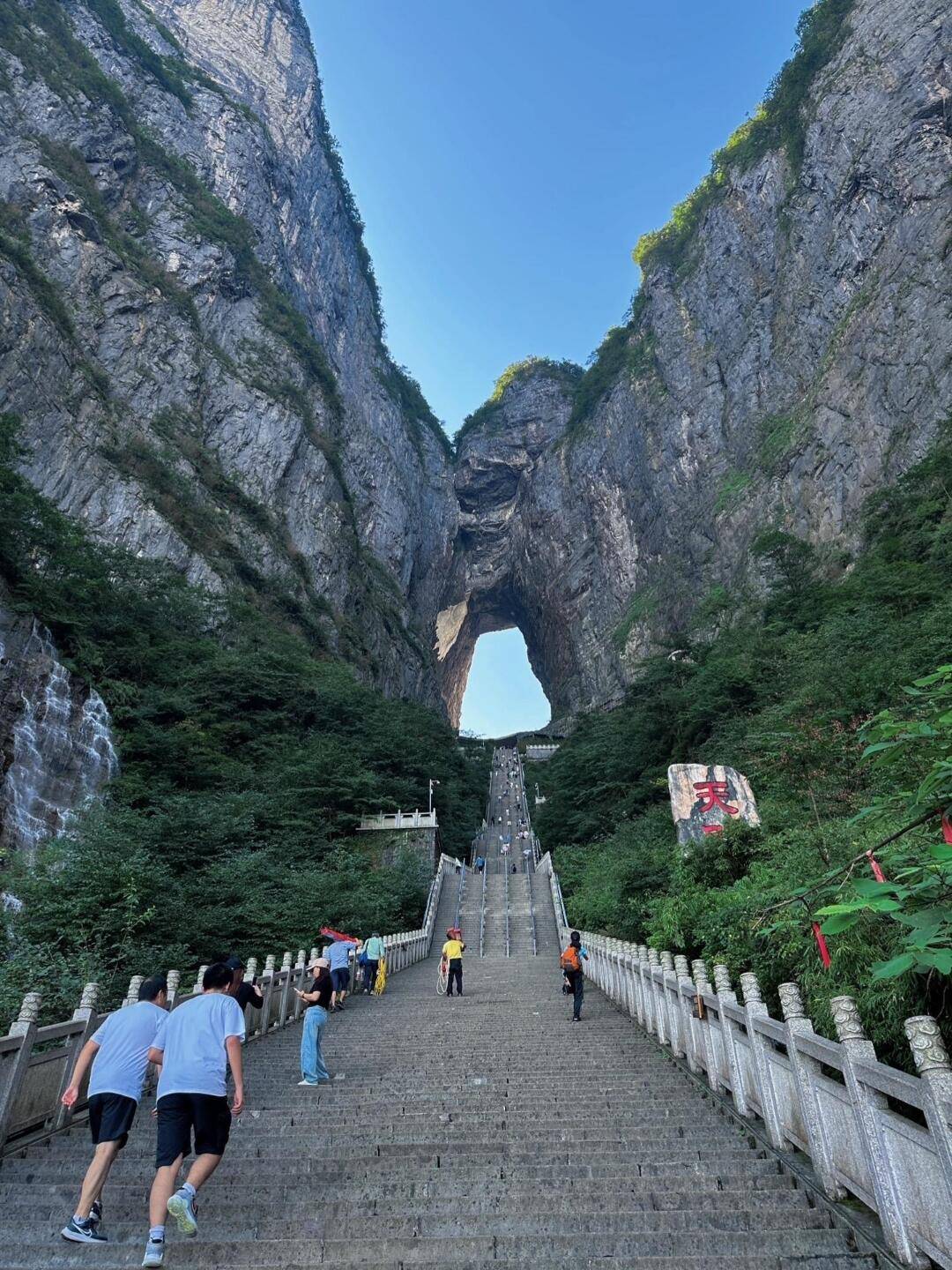 抵达张家界后,建议先去天门山国家森林公园开始你的探险之旅。乘坐世界上最长的索道——天门山索道,你可以从高空俯瞰整个张家界的美景。抵达山顶后,沿着蜿蜒的山路步行,你会经过壮观的玻璃栈道,体验悬挂在悬崖边的惊险刺激。傍晚时分,不妨在这里欣赏一次震撼的日落。